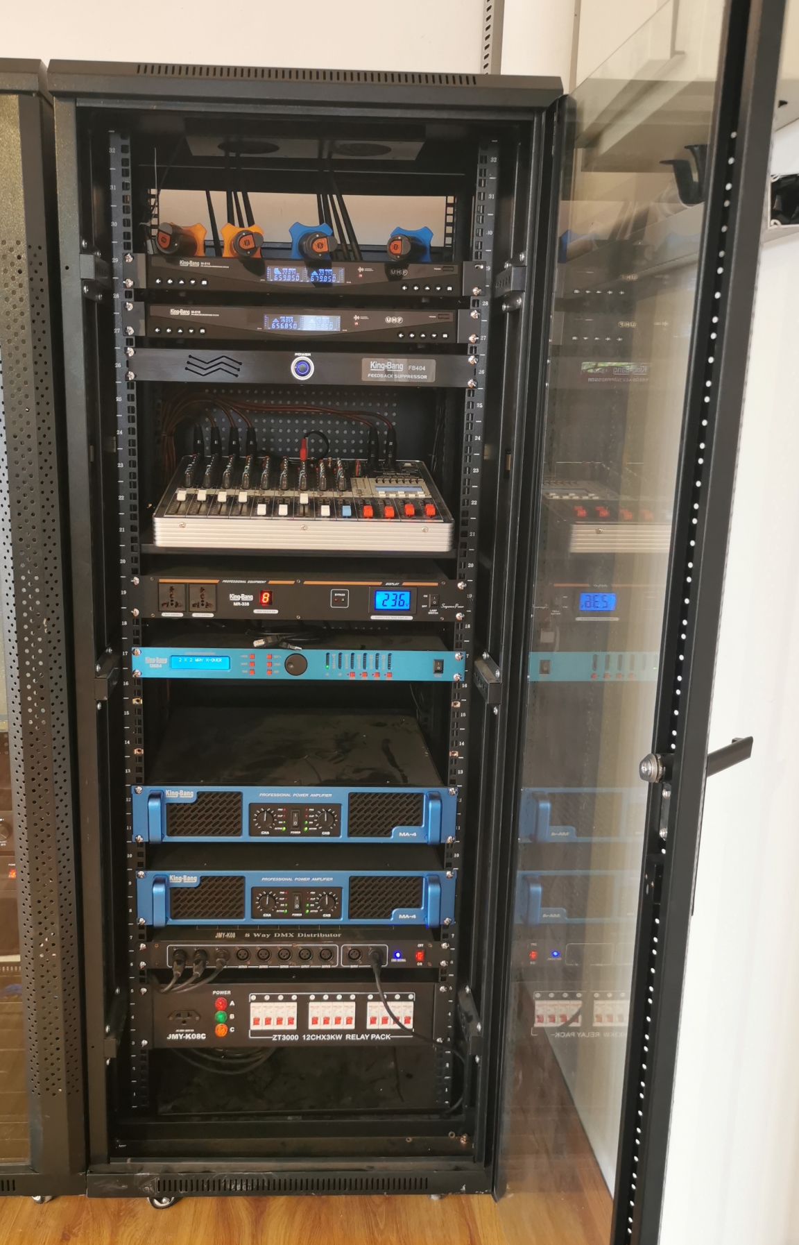京邦電子(KING-BANG)京邦技術工程師通過對多媒體教室的布局環境分析,對音響設備進行合理的布置與連接,并安裝的音響設備,可以使聲源和音響系統末端——音箱同處于一個聲場區域內,使觀眾能感受到聲源的真實存在,達到高保真重放的擴聲要求。且達到多媒體教室音響以自然聲為主,要求擴散性良好,聲場分布均勻,響度合適,自然度好等要求。