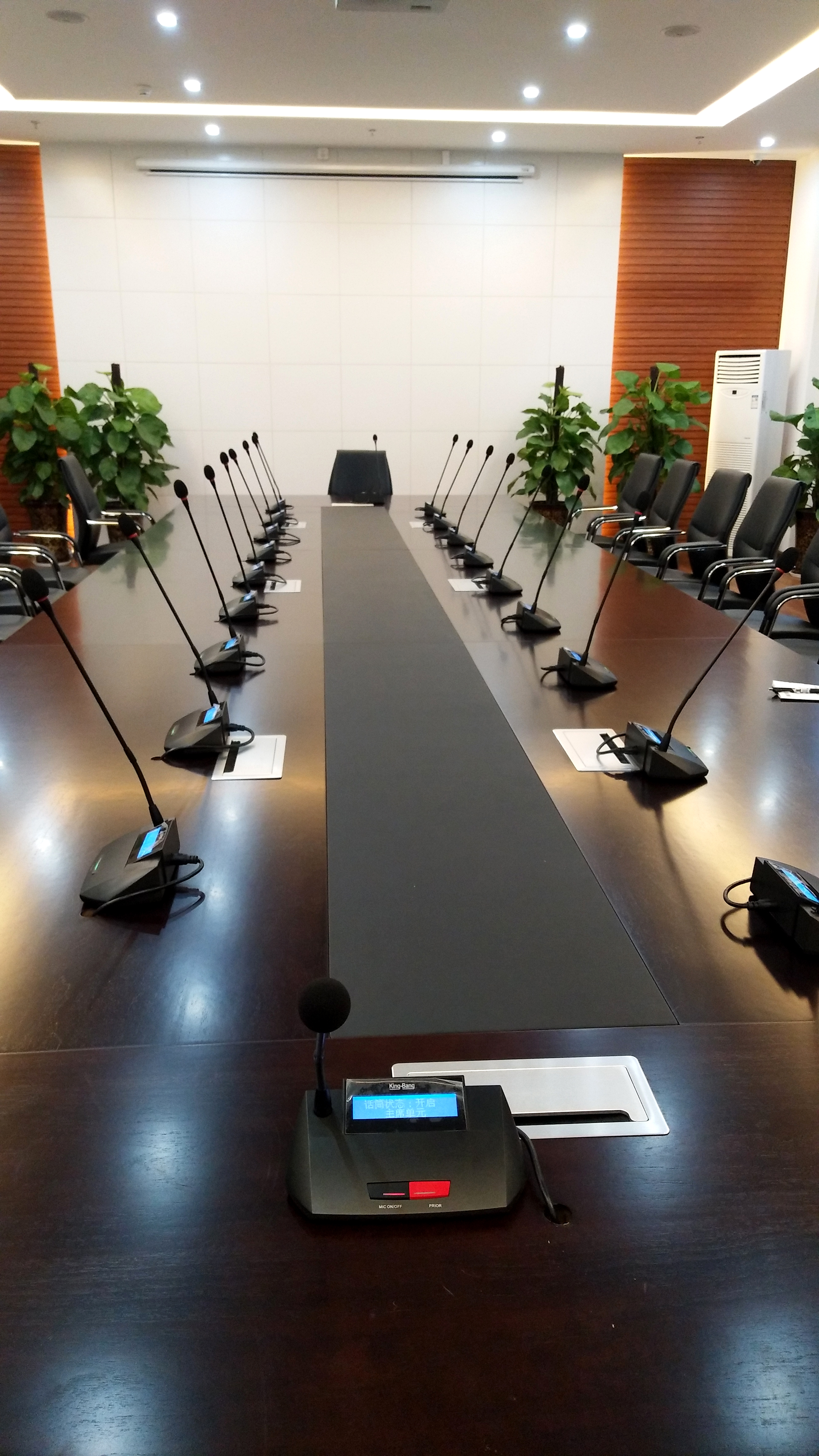 配合京邦(King-Bang)智能中控矩陣系統,集中了燈光、機械、投影及視音頻控制手段于一體,滿足對會議室音視頻進行實時切換調度。