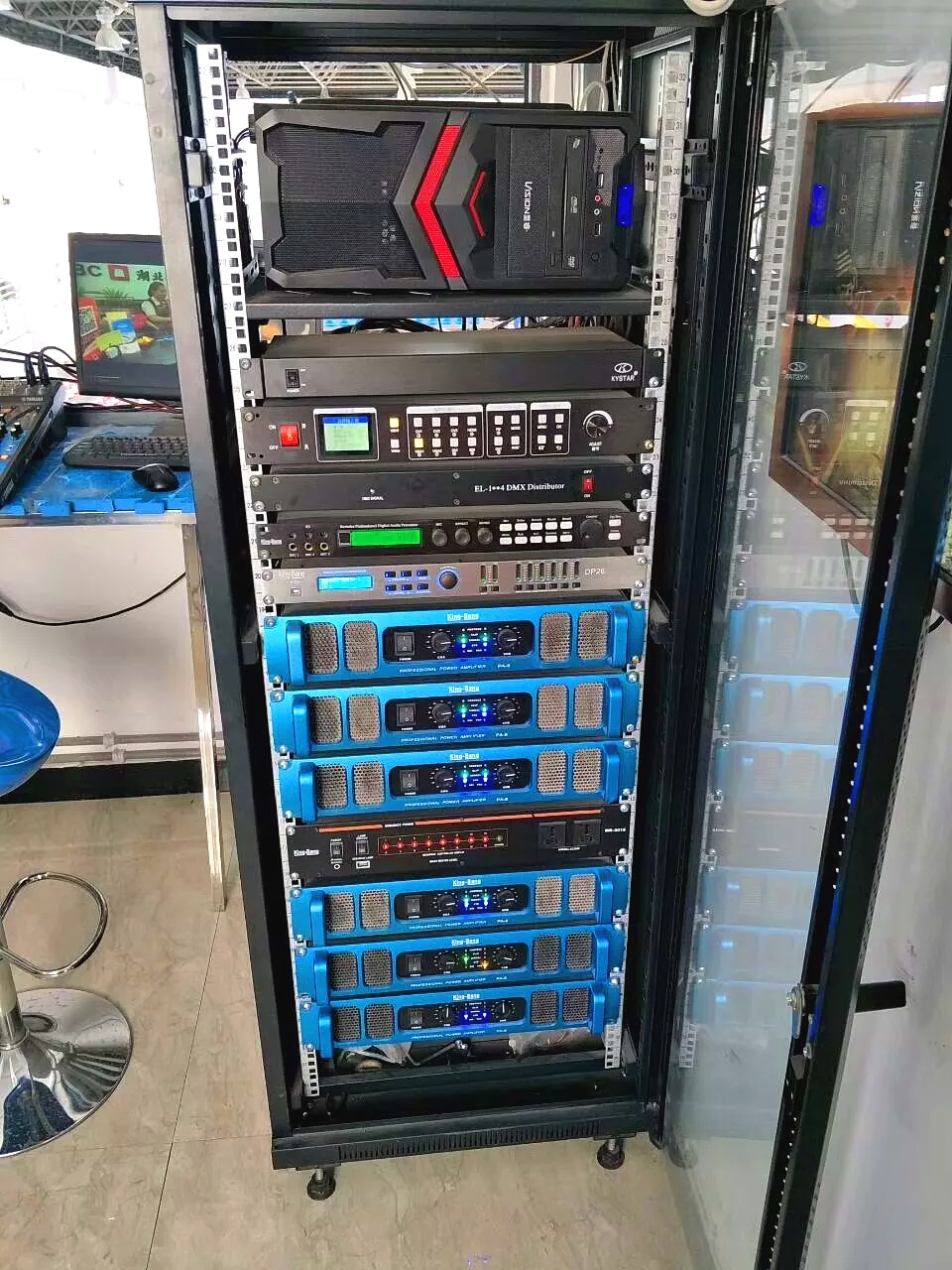 此外采用音箱處理器和PA系列功放,不但為音箱提供了精確的功率來源,還能進行智能管理和精確的數字音箱處理控制。